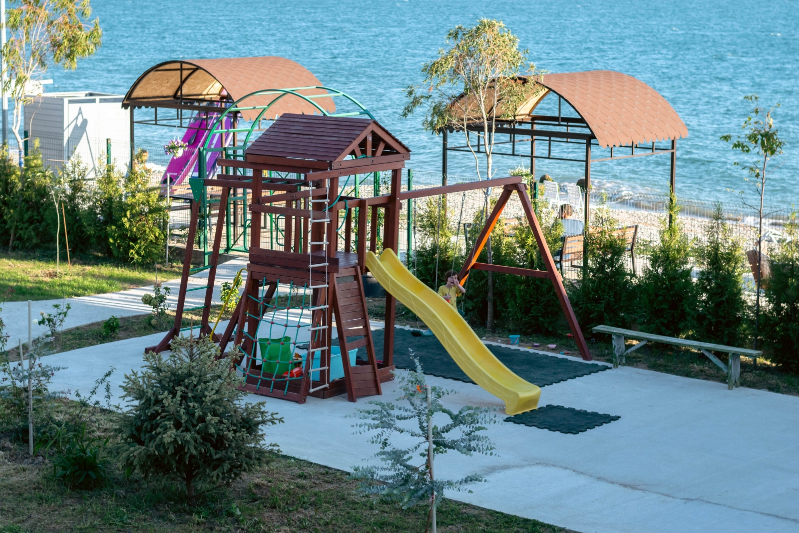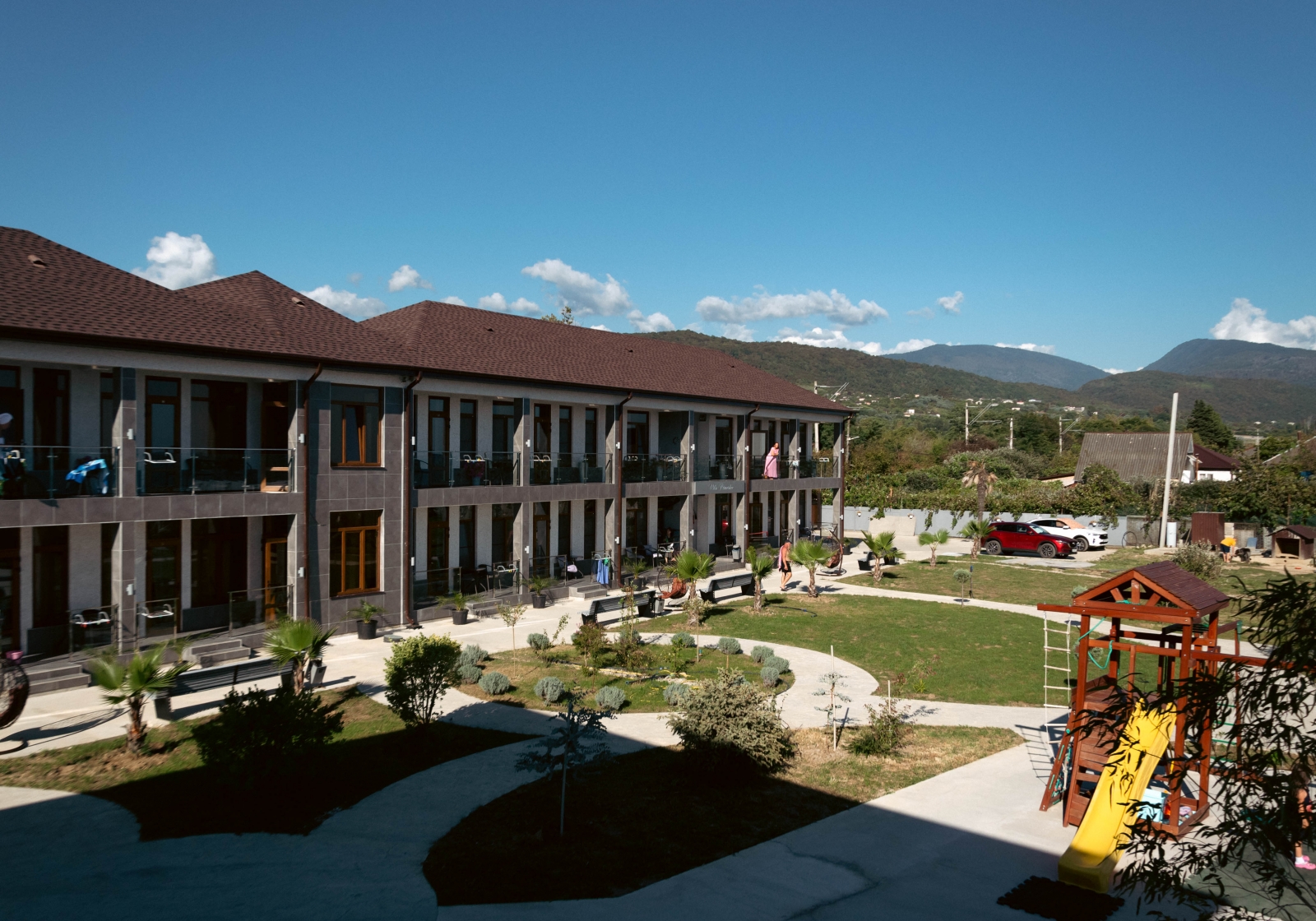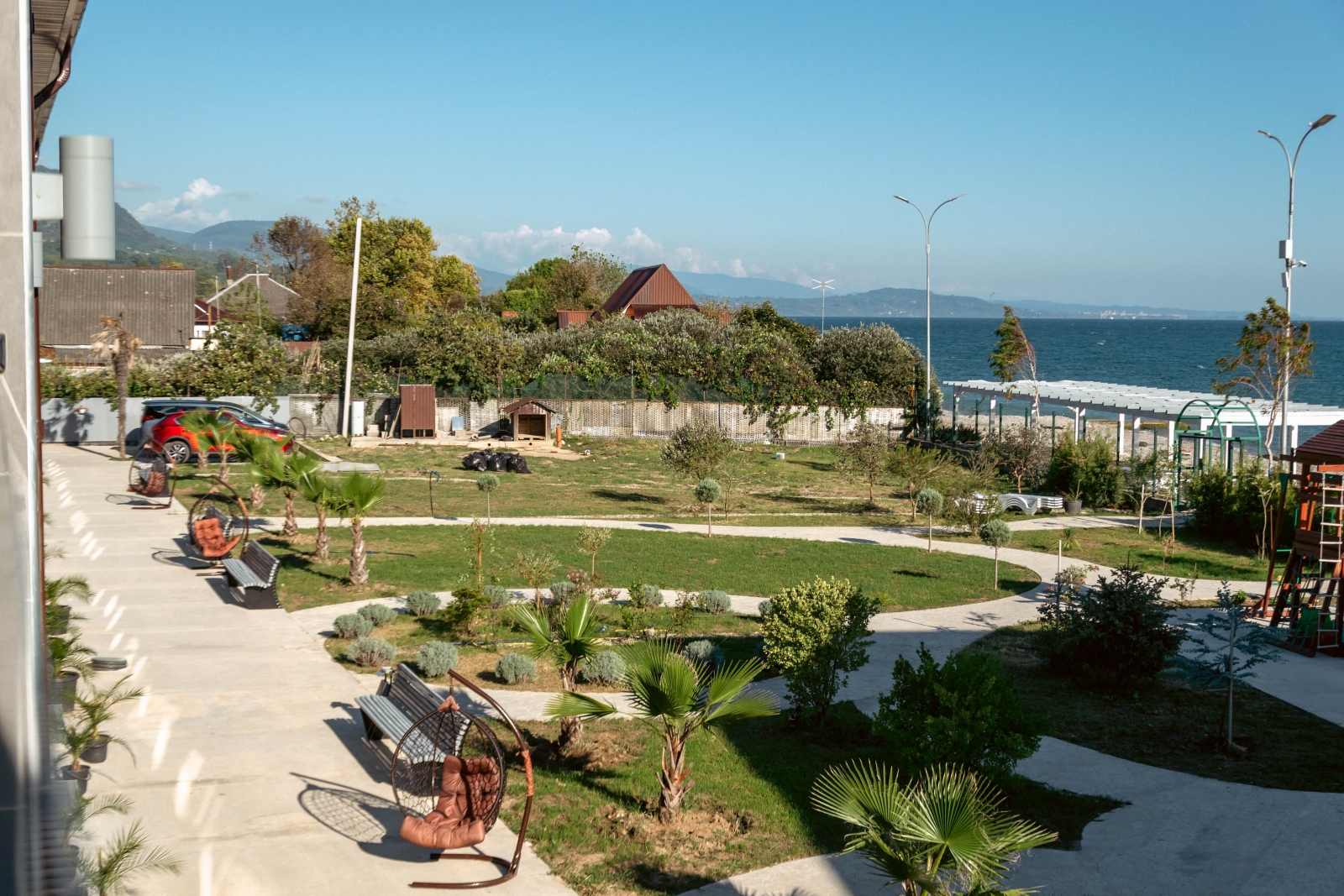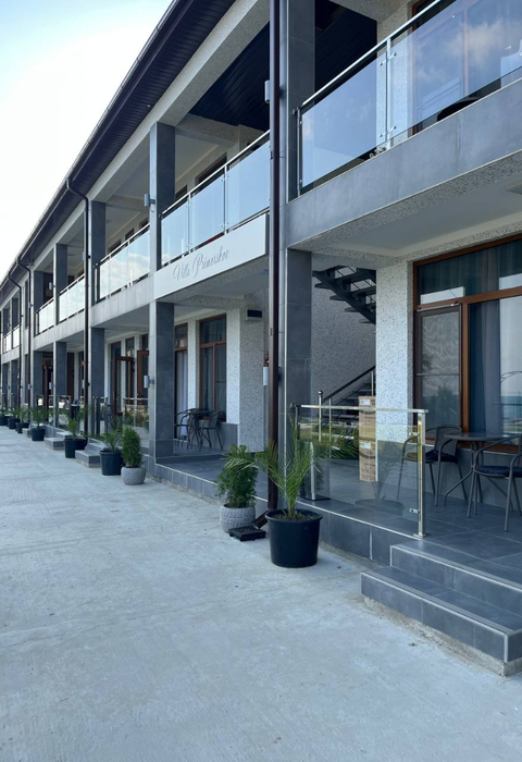 Отель "Villa Primorskoe" имеет закрытую облагороженную территорию, подойдет для спокойного семейного отдыха.
